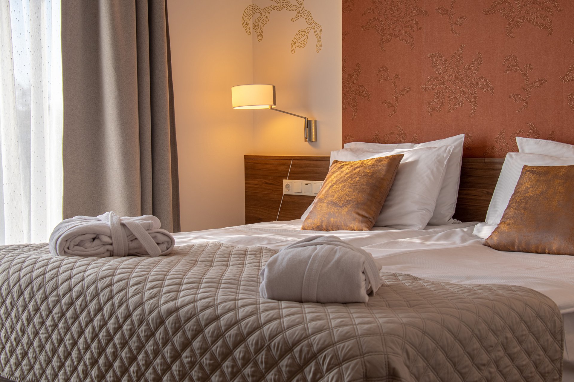 Ez a felnőttbarát hotel Egerben minden apró részletet úgy alakít ki, hogy a vendégek valóban megélhessék a zavartalan pihenés élményét. A hangsúly a csendes, elmélyült relaxáción van – azon, hogy minden pillanat lehetőséget adjon a lelassulásra és a feltöltődésre.Itt nem szükséges alkalmazkodni a gyerekzsivajhoz vagy a folyamatos nyüzsgéshez; a hotel atmoszféráját a csend, a madárcsicsergés és a környék békés ritmusa határozza meg. A wellness részlegben a halk vízcsobogás, a szaunák nyugodt zúgása és a lágy háttérzene hoz létre olyan légkört, ahol az ember szinte azonnal elengedi a hétköznapok feszültségeit.