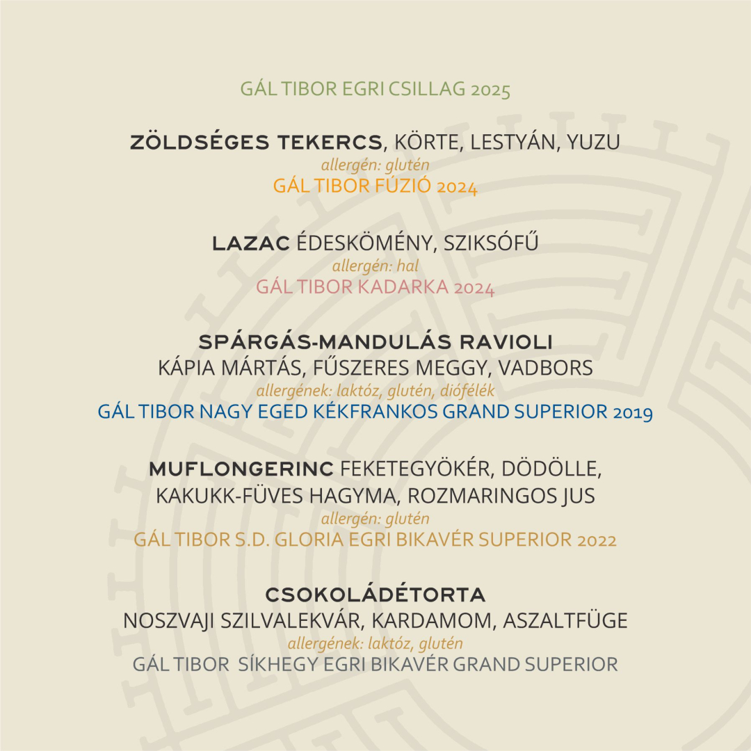 Kreácsik Ádám menüsora a borválogatások mellé: